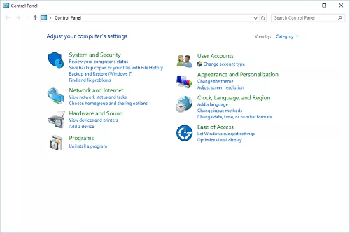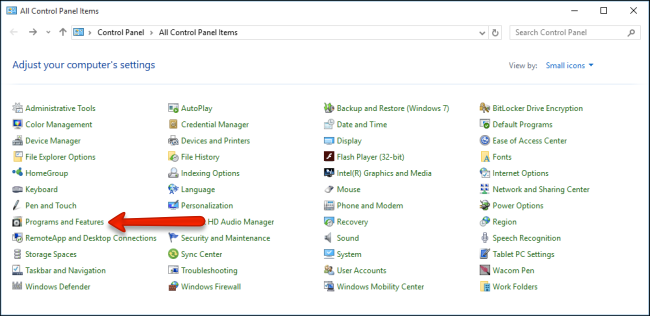Alternatively, your control panel may not be displayed in this simplistic, categorized mode. If that's the case, look for an icon labeled "Programs & Features".
