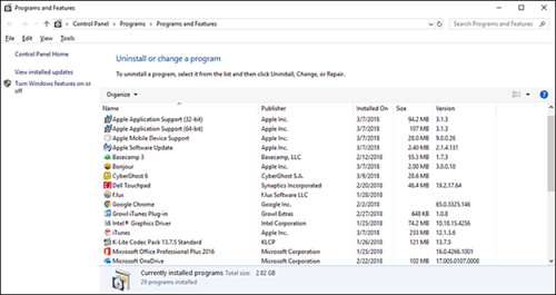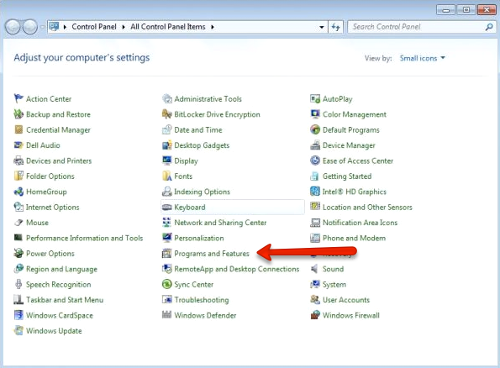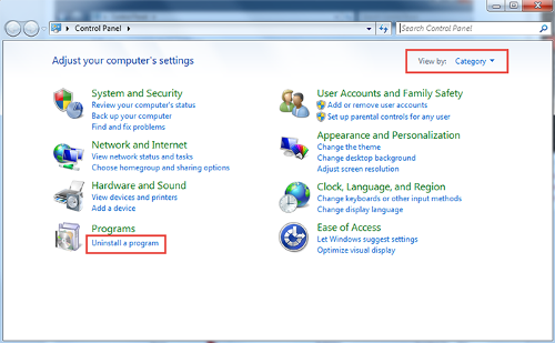 You will see a screen like the following, where, under Programs, you'll see an Uninstall option.